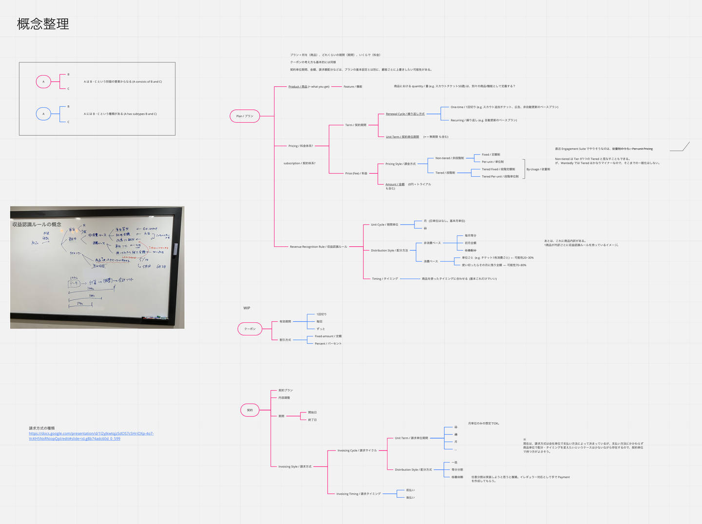次に、これらのモデルを昇華し、一度概念レベルでの整理を行いました。ここはドメインエキスパートである経理やコーポレートのメンバーと一緒に確認し、今ビジネス的に提供しているものだけなく、将来的に対応するかもしれないちょっと広い範囲まで含めて行いました。