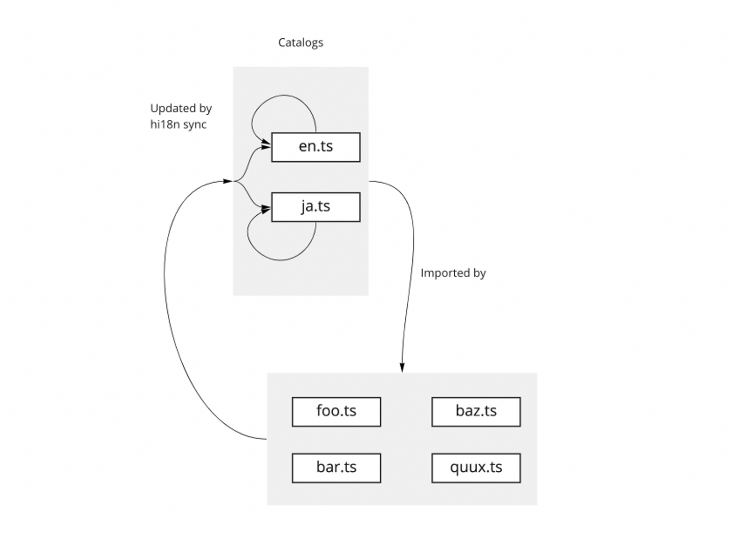 現在、翻訳カタログの型定義は、Bookの定義と同じファイル内にtype/interfaceとして定義されている必要があります。これは、bookとカタログを別ファイルにしたときにモジュールのimport関係が循環的になってしまうことを意味するため、将来的にはその制限を緩和したいところです。