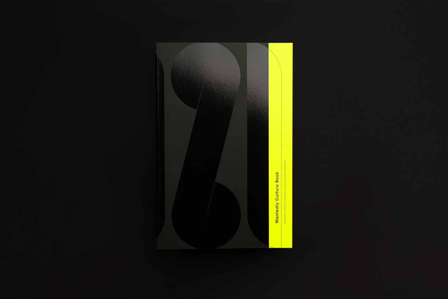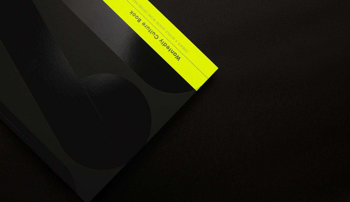 2021年のWantedly Culture Bookの表紙デザインは、「闇を切り裂く光」をコンセプトに制作。黒い表紙をめくると、鮮烈なイエローの中表紙が現れるギミックに。新たな時代を切り開くWantedlyの企業姿勢を感じさせるデザインを目指した。