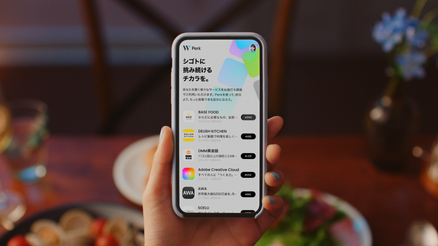 「あれもこれも福利厚生で叶う」というコンセプトを、軽快でダンシーなCMソングに合わせて様々なサービスを小気味よく使いまくる夏帆さんの演技で表現。既存の「福利厚生」という言葉が持つ古い・使いづらなどの、ネガティブなイメージを払拭。広くPerkの認知を高めることに成功した。