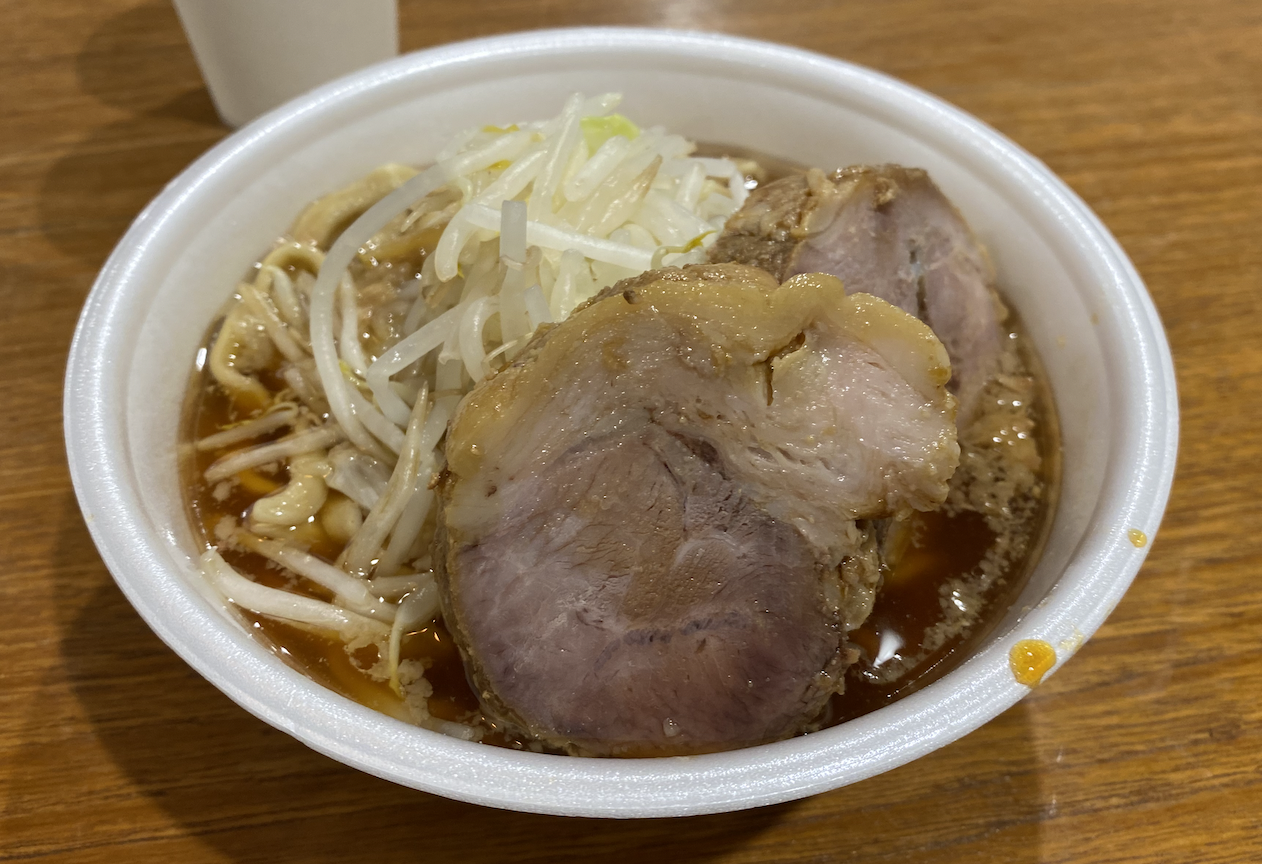 まずはラーメン二郎に買い出しです。言わずもがな毎日長蛇の列ができているので、他のお客様に迷惑にならないようできるだけ買い出しは二郎に慣れているメンバーと一緒に行くことを強くオススメします。そして、そのあとに乗り込むタクシーに迷惑をかけないようにします。