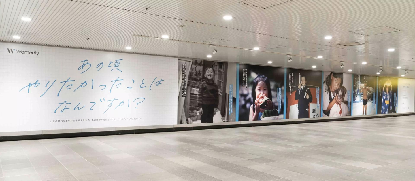 「あのことやりたかったことはなんですか?」という問いかけから始まり、職種も年齢もバラバラながら、“いまの時代を夢中で生きる人たち”の子ども時代のポートレートが並ぶ。さまざまな時代の空気を感じさせる写真は、見た人に「これは何の広告だろう?」という疑問を与え、興味を惹いた。