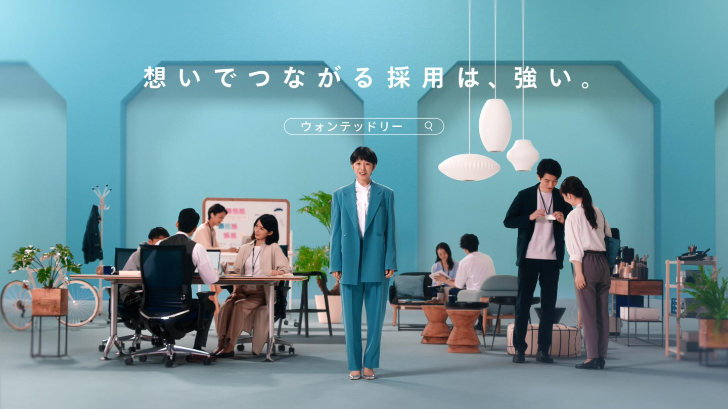 女優の夏帆さんを起用した、Wantedly 採用サービスのTVCM。『なぜ働くのか?』『何のため働くのか?』を大切にする「想い」を軸にした独自の「共感採用」をダイナミックな演出とともに訴求した。