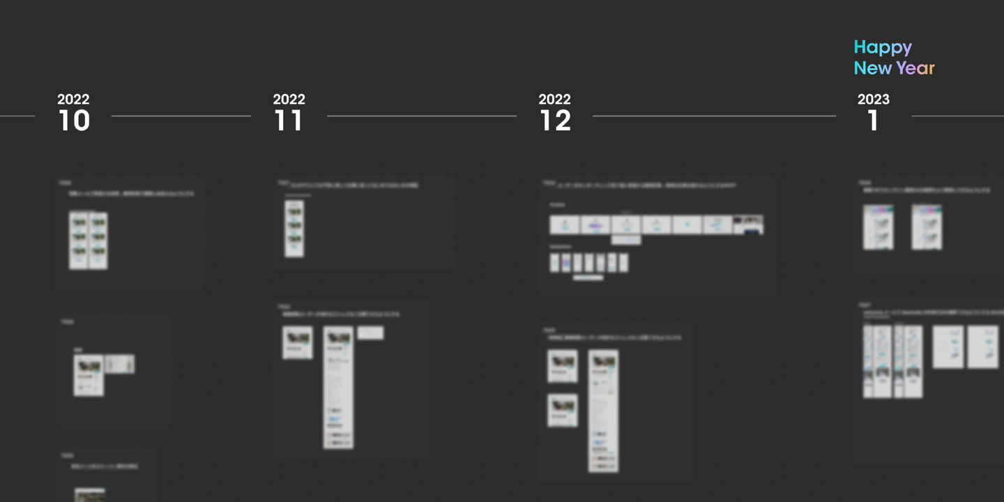 そこで、施策毎に決まったデザインを月毎の時系列に並べ、Figma上で参照できるようにしました。