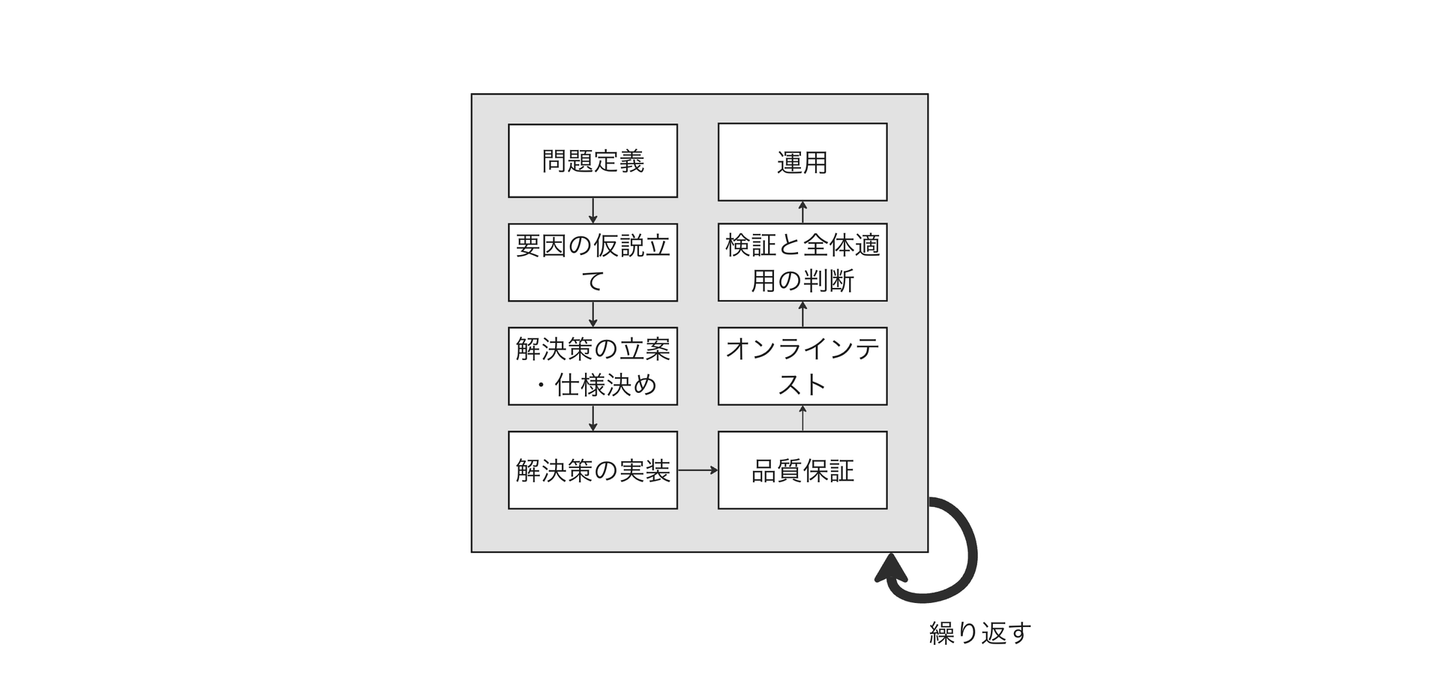 実装された解決策が問題ない品質だと判断できたら、オンラインテストで見るためのメトリクスや全体適用の基準を設定します。そして、ユーザーに対して解決策を実際にリリースし、本番環境で得られたデータを用いて効果を検証します。
