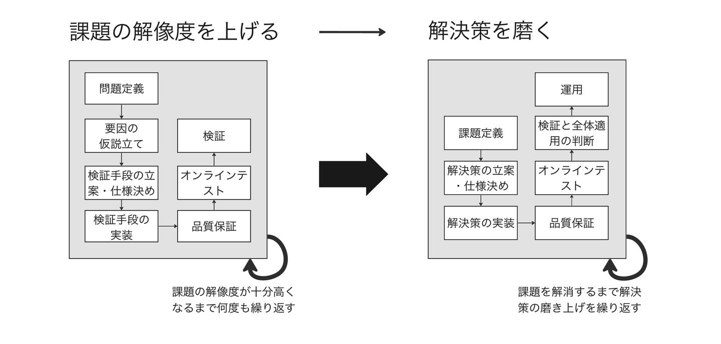 一度の取り組みで問題が完全に解消されることは稀です。ユーザーが抱える問題の要因は多岐にわたるため、一つの仮説だけにフォーカスせず、複数の仮説を検証することが必要です。また、解決策を完璧に作り上げてリリースすることは不確実性の多いプロダクトのグロースにおいてリスクが高いです。そのため、問題への理解や解決策の品質を継続的に磨き上げることが重要だと考えています。