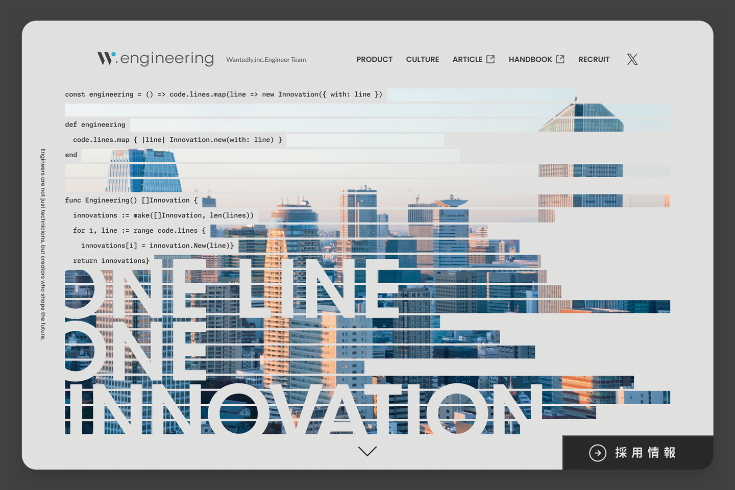 2024年4月16日、エンジニア向けブランデイングの第一弾として、ウォンテッドリーのエンジニア組織のビジョンやカルチャー、また扱っている技術の最新情報などを発信するサイト「Wantedly.engineering」をリリースしました。