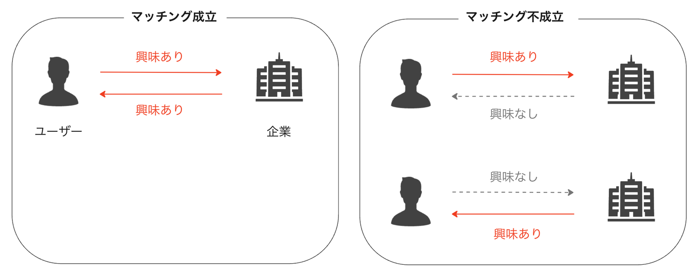 ユーザーはこの一覧ページから自分の興味がある募集をクリックして詳細を読み、もっと詳細を聞きたいと思ったら「話を聞きに行きたい」ボタンを押すことで応募をすることができます。そして応募された企業がユーザーを魅力的に感じたら返信を行い、両者のマッチングが成立します。