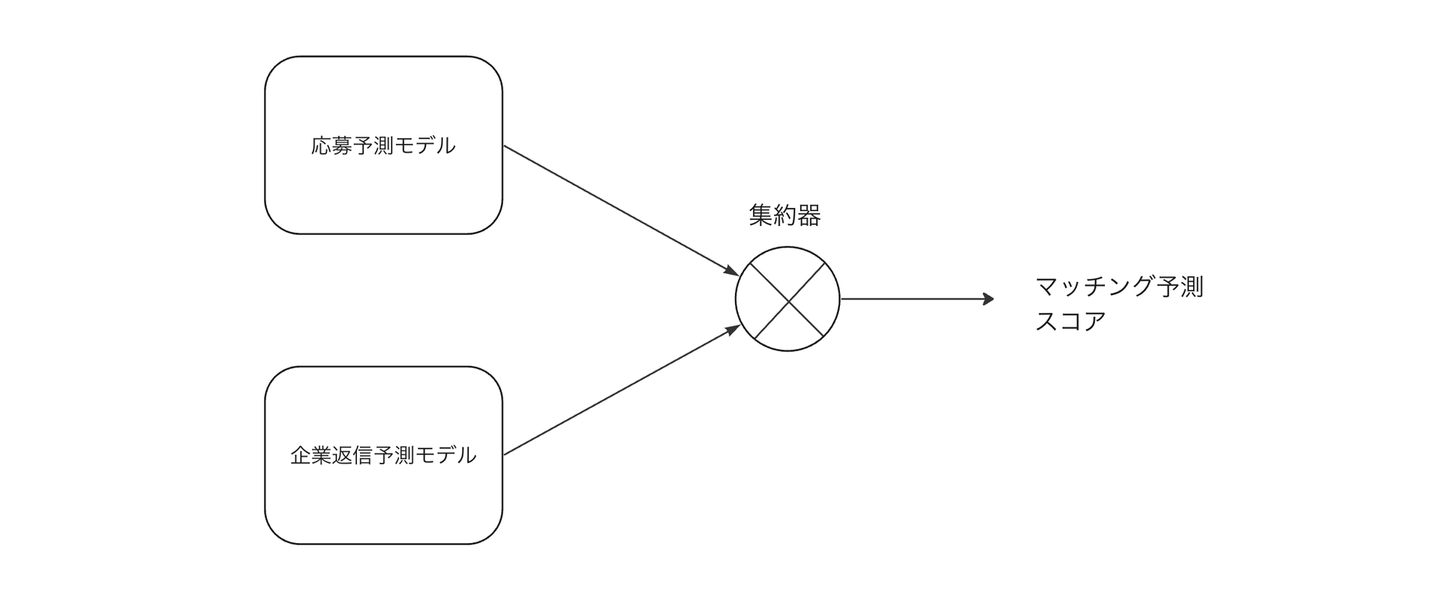 相互推薦(reciprocal recommendation)という名前は2010年のRecSysで発表された論文 "RECON: A Reciprocal Recommender for Online Dating"[1] において初めて使われ、それ以来多くの相互推薦システムでは双方の嗜好を別々に予測して最後に予測値を集約して1つの予測値にするという手法が取られてきました。Visitの推薦システムでも以下のような形で相互推薦システムの開発を行いました。