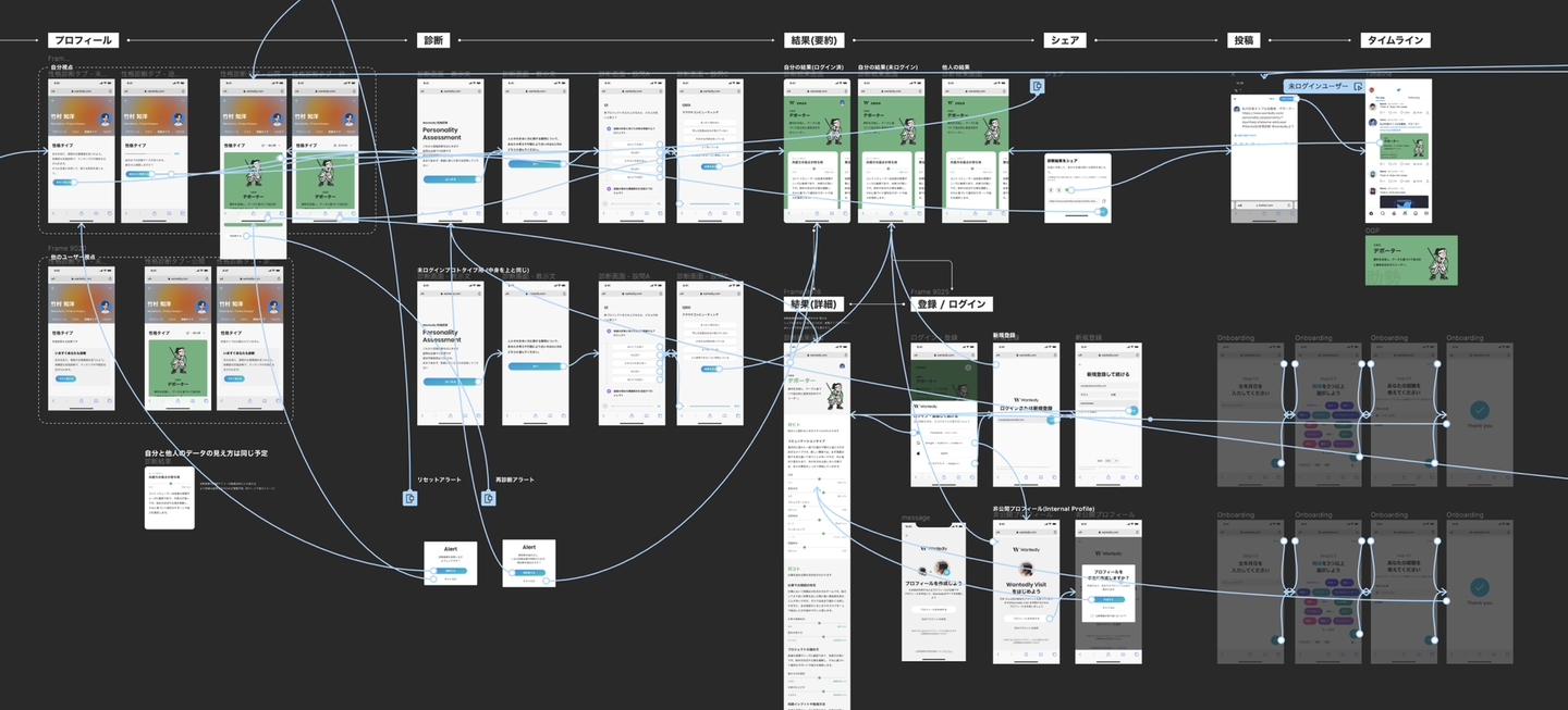 Wantedlyではデザインシステムを活用したプロトタイピングで、高速でありながら一貫性のあるデザインでプロトタイプを作成できるため日頃からこの手法を活用しています。今回の性格診断では実装側のプロトタイプも同時並行していました。既存コンポーネントを活用することで、実装するためのデザインとしても活用でき、さらに効率的な開発が実現することができました。