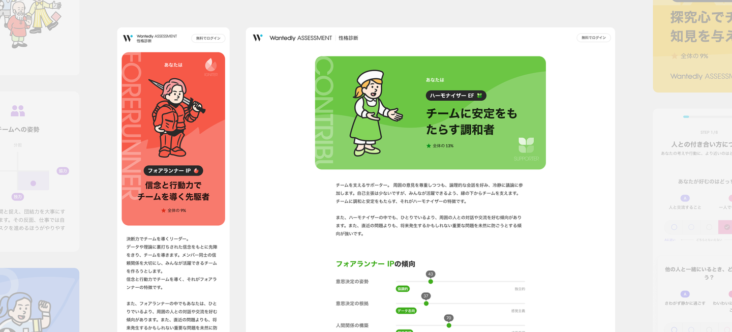Wantedly では2024年3月に「Wantedly Assessment」の第二弾として、「性格診断」をリリースしました。Wantedly の性格診断は、16の性格タイプと個人の性格傾向から自己理解やチームとの相互理解を深め、活躍しやすい環境の再発見やチームビルディングに活用できます。