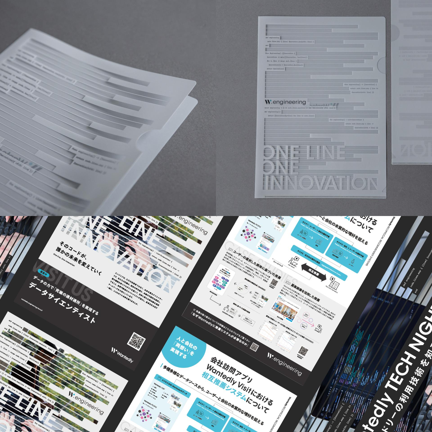 エンジニア向けのイベントで使用する、クリアファイルやフライヤー、キービジュアルなどを作成。「Wantedly.engineering」のブランドイメージと一貫性のあるデザインに仕上げている。