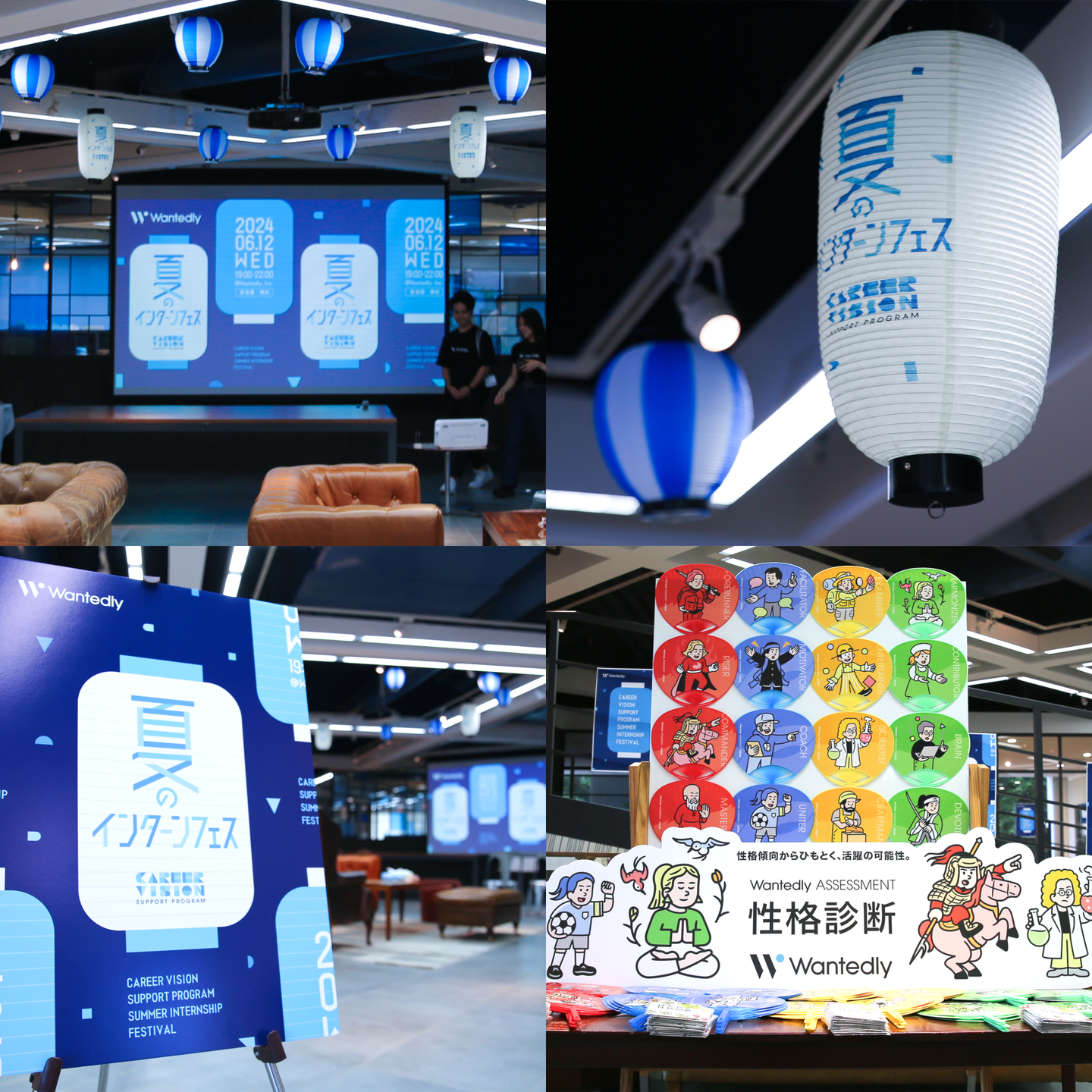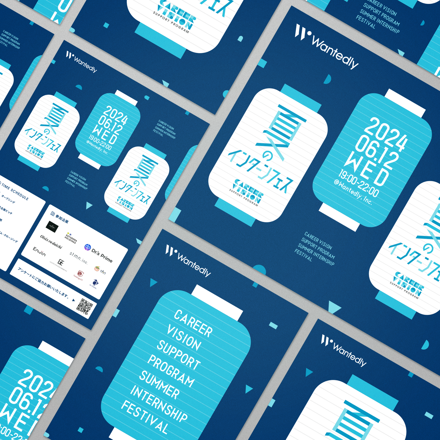 学生を対象としたキャリアイベント 「CAREER VISION SUPPORT PROGRAM〜 夏のインターンシップフェス〜」を開催。夏祭りをテーマに、会場造作としての提灯やノベルティのうちわなどをデザインし、イベントを盛り上げた。