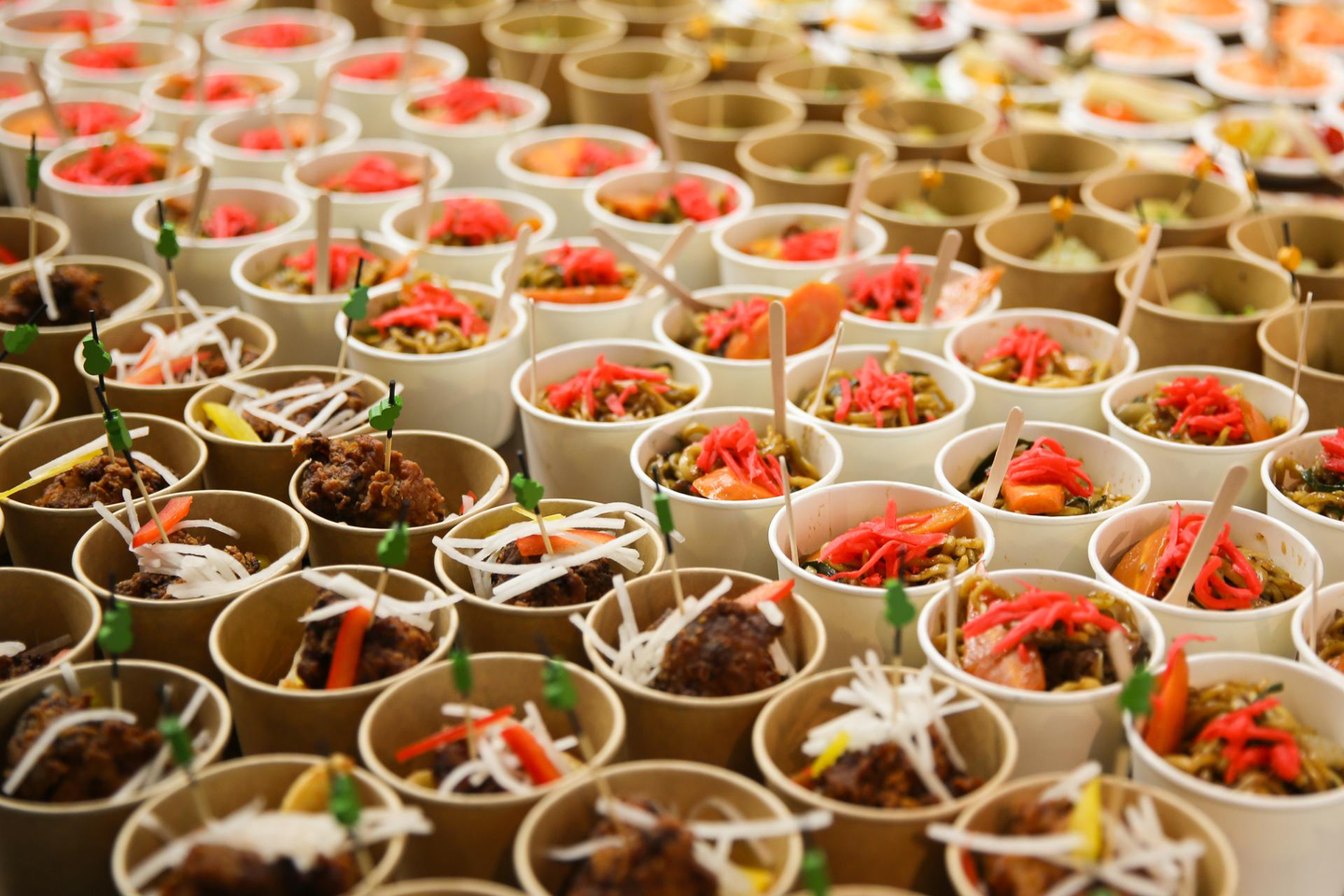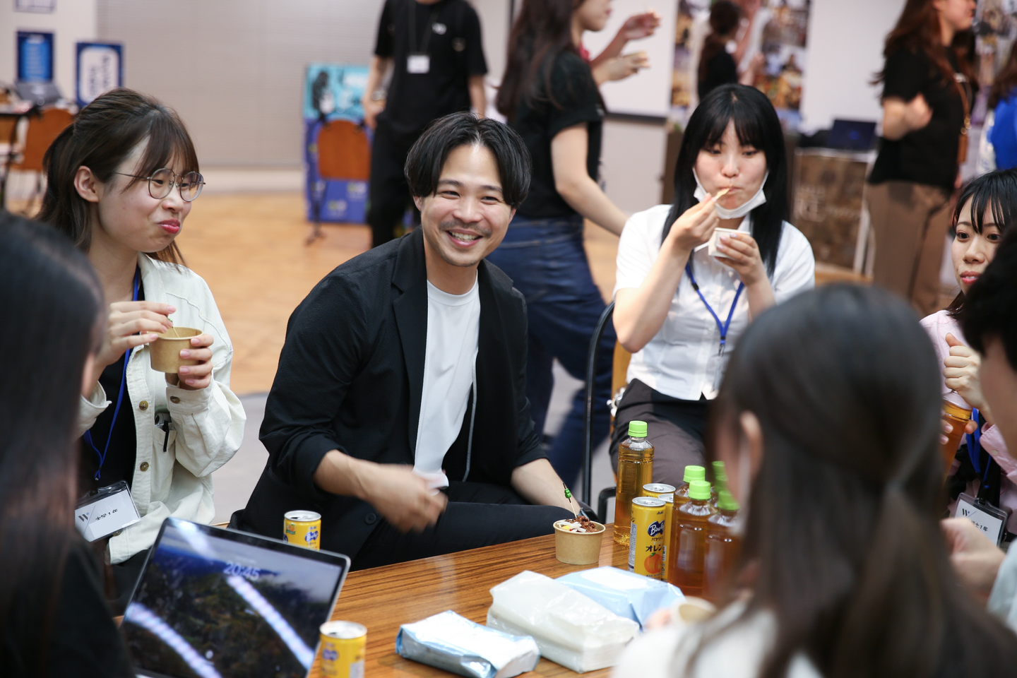 企業ブース訪問の後には「懇親会」を実施しました。今回のイベントテーマの「お祭り」にちなんで、フランクフルトや焼きそば、ラムネなど、お祭りらしいメニューを多数ご用意!お食事を片手に、みなさん楽しそうにお話をされている姿が印象的でした。