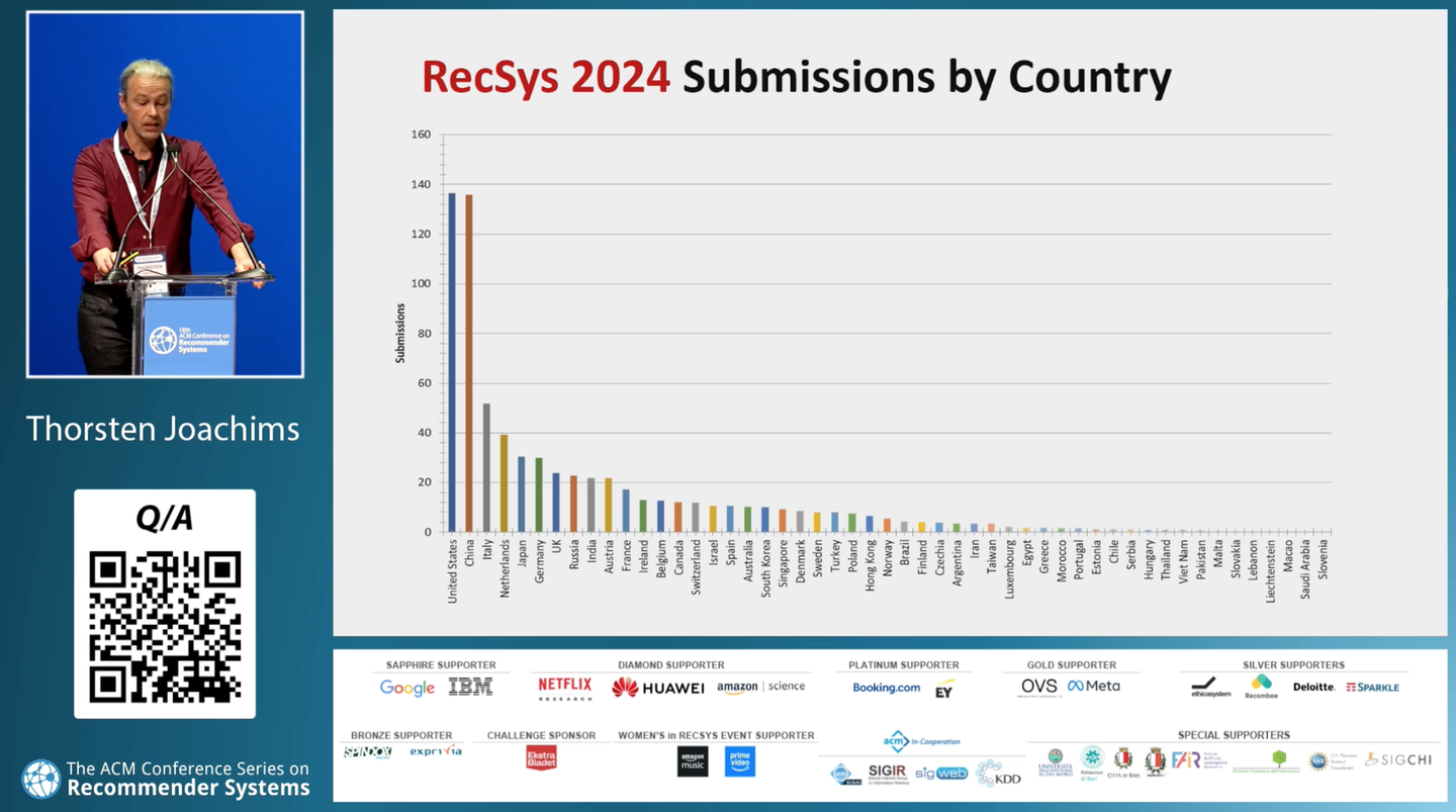 RecSys は The ACM Conference Series on Recommender Systems の略称で、ACM(計算機学会)が主催する推薦システムに関する主要な国際会議の1つです。この会議には、推薦システムの研究を行う研究者や、Eコマースやメディア、HR など多様な領域で活躍するデータサイエンティスト・MLエンジニアが集まり、推薦システムに関する最新の学術研究成果や産業界での応用など、幅広い内容に関する発表や議論が行われます。