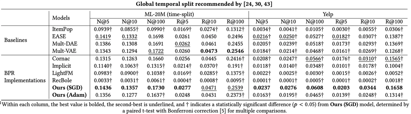 BPR損失関数を使った行列分解(Matrix Factorization, MF)モデルの性能を再検証した論文です。MFの実装は本家以外にもさまざまあり、それぞれ微妙に実装が異なるようです。この論文では、