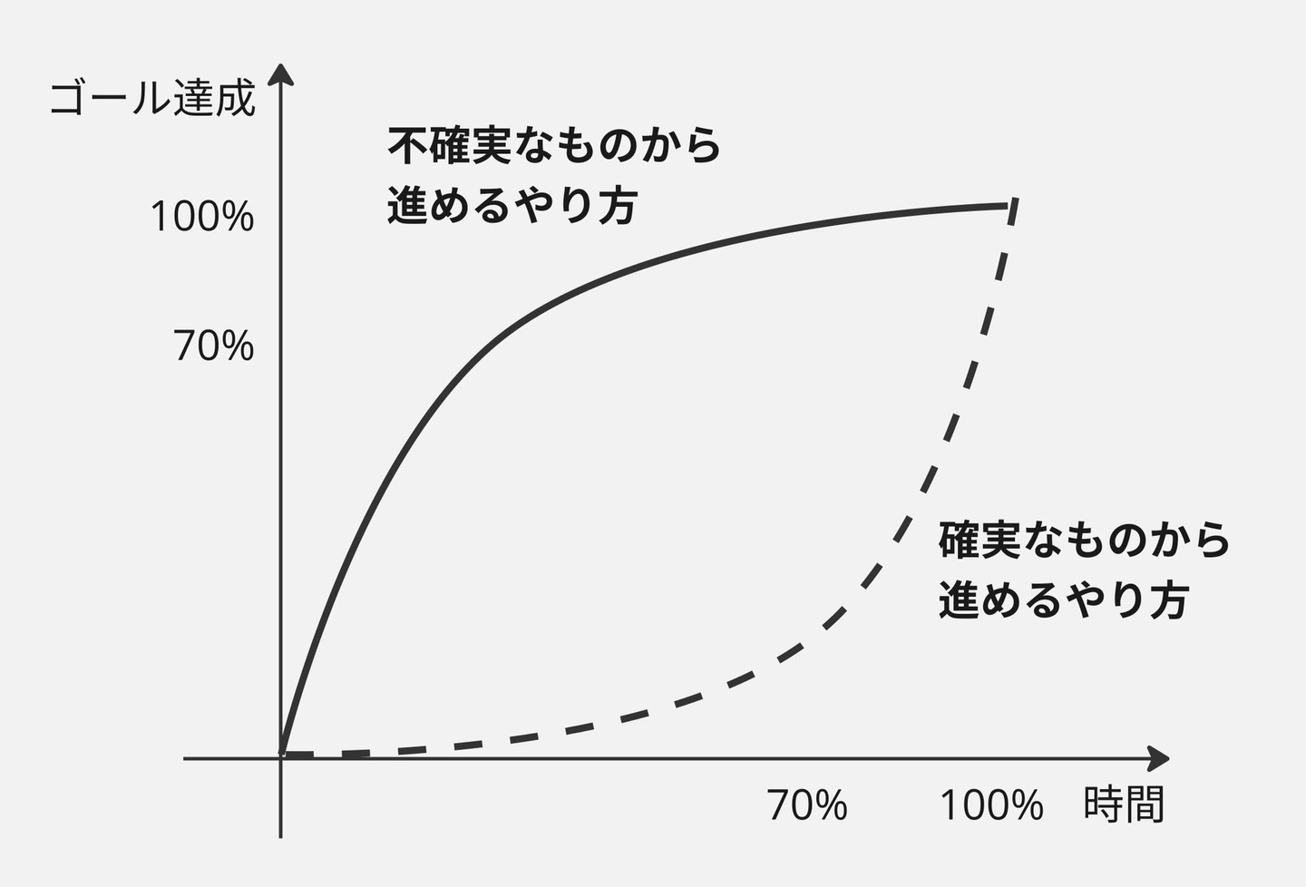 日本ではラストスパート志向が強いですが、プロジェクトリードにおいて不確実性を効率的に下げるためにはロケットスタートの方が適しています。