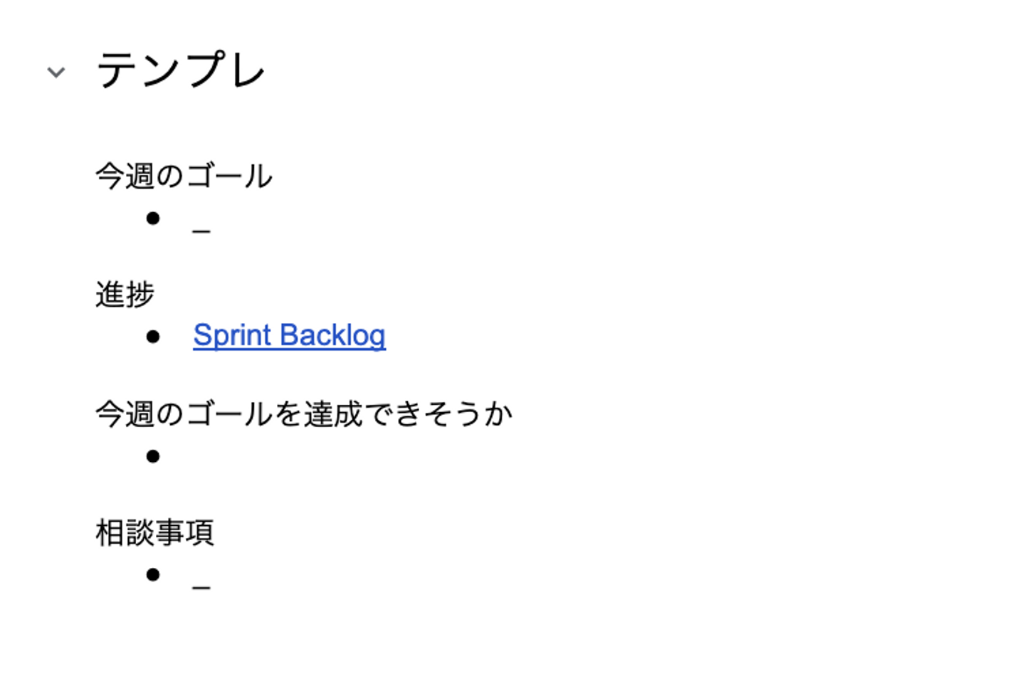 - プランニングで記載した今週のゴールに追記する形で「どうなったか」を書く