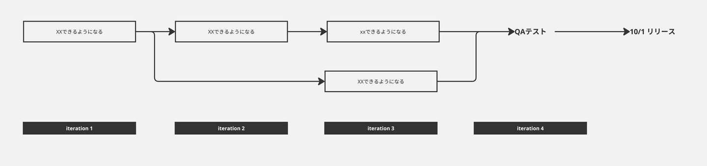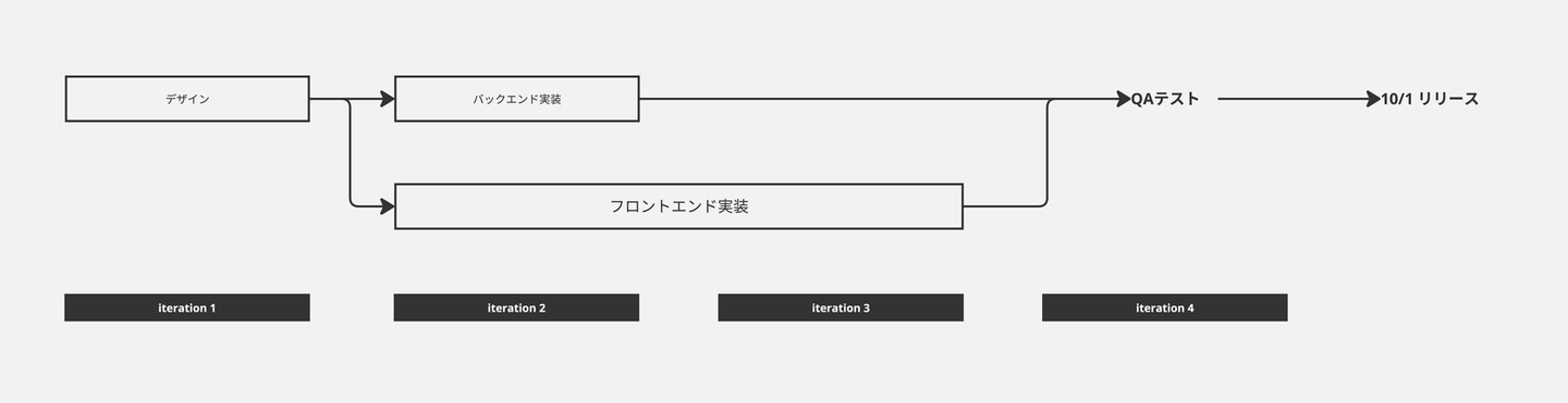 「2. 人的リソースの調整」から考えると「10/1~10/14:バックエンド開発、10/17~10/31:フロントエンド開発、...etc」のようなロードマップを引きがちです。しかし結局リソース効率優先になってしまうので、問題解決の最短経路は取りにくくなります。また、職能同士のコミュニケーションコストを勘定に入れないと実績が見積りより膨らんでしまうというリスクもあります。