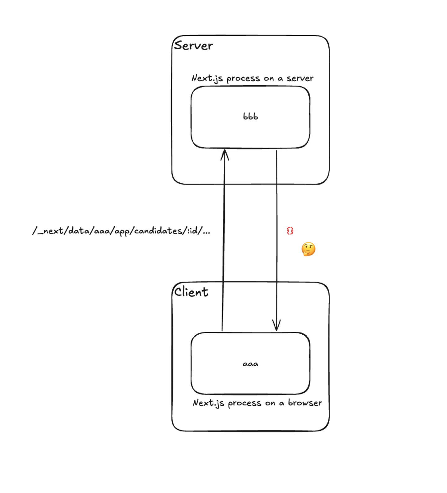 ユーザーがブラウザでアプリケーションを開いたままにしている間に、サーバー側で新しいバージョンがデプロイされる。その後ユーザーがSPA遷移を行うと、ブラウザは手元に保持している古い buildId を使ってサーバーにデータを要求する。しかし、サーバーは既に新しい buildId に更新されているため、古いIDでのリクエストを不正なものとみなし、データを返さず空のオブジェクトを返却してしまう。