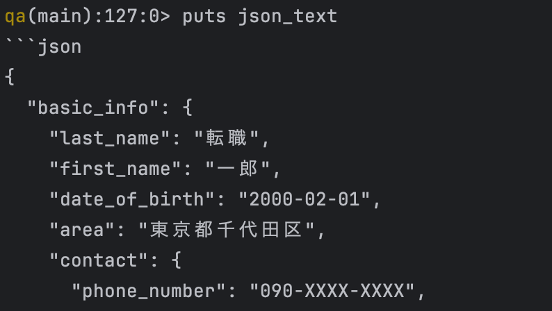 "date_of_birth": "YYYY-MM-DD string",レスポンス( 意図せず```jsonが含まれている)