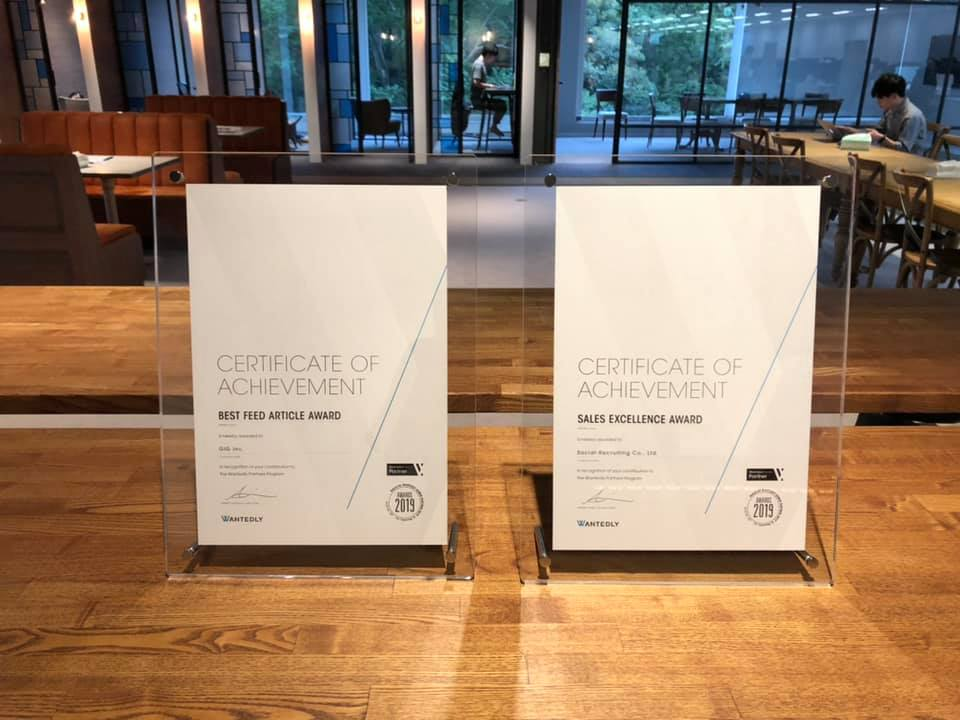 弊社デザイナーによる制作で、本家のWANTEDLY VISIT AWARDSに勝るとも劣らない素敵な賞状をご用意できたと自画自賛です(笑)
