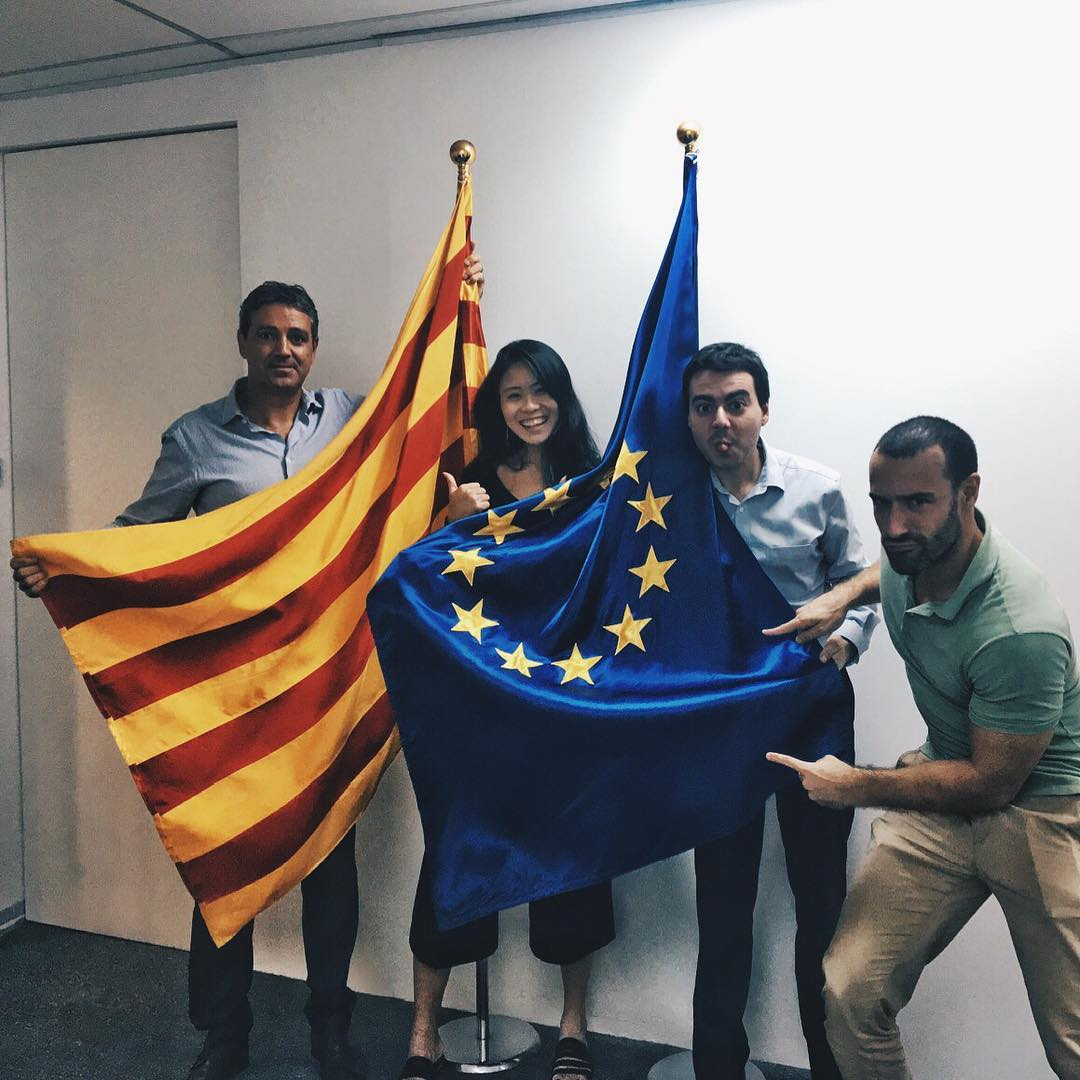 Yumei and her former colleagues celebrating St. Jordi's Day at the Catalan Tourism Board Asia-Pacific's office