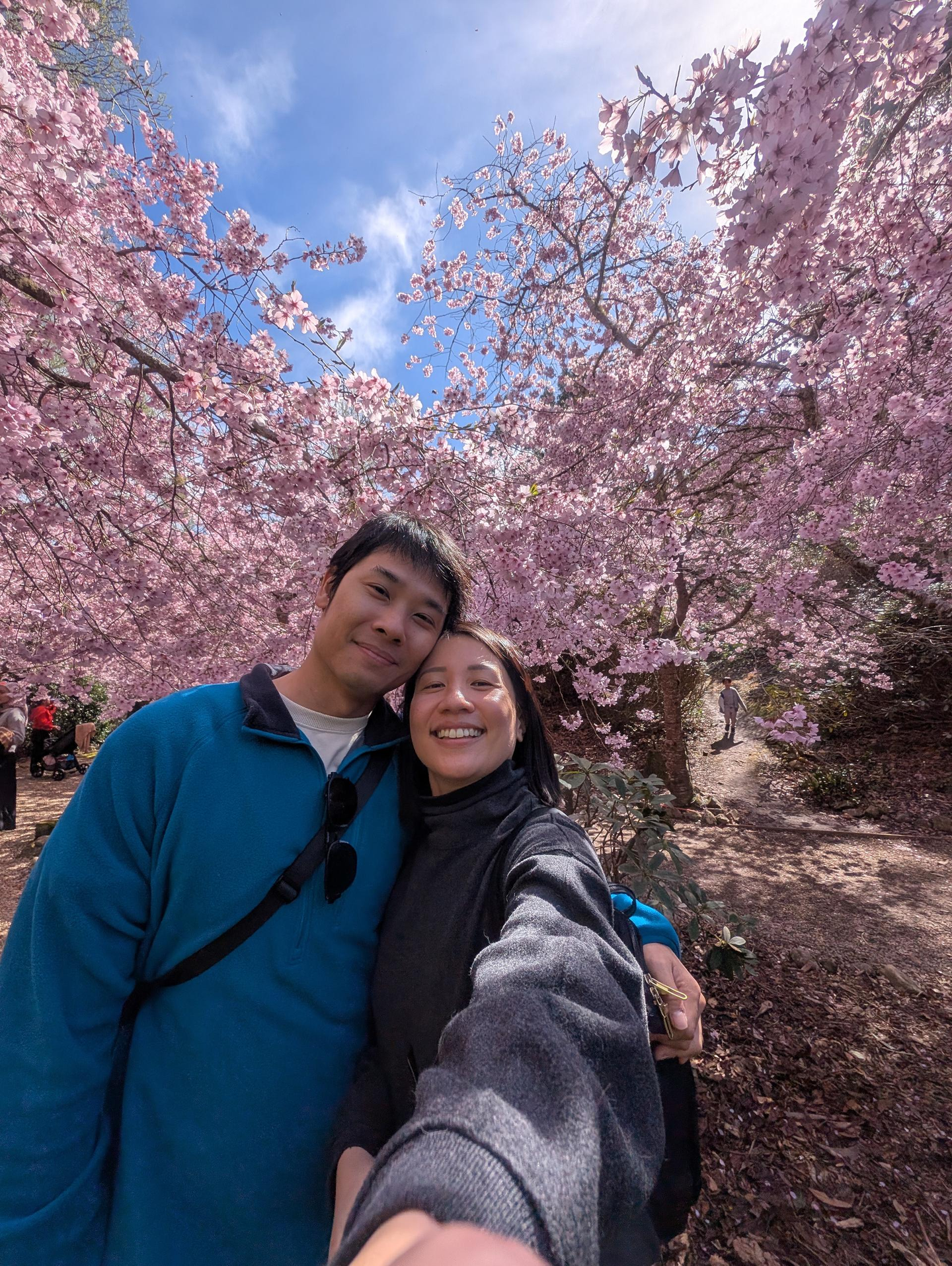 Benjamin and his wife viewing the sakura cherry blossoms in Wellington, New Zealand, 2025