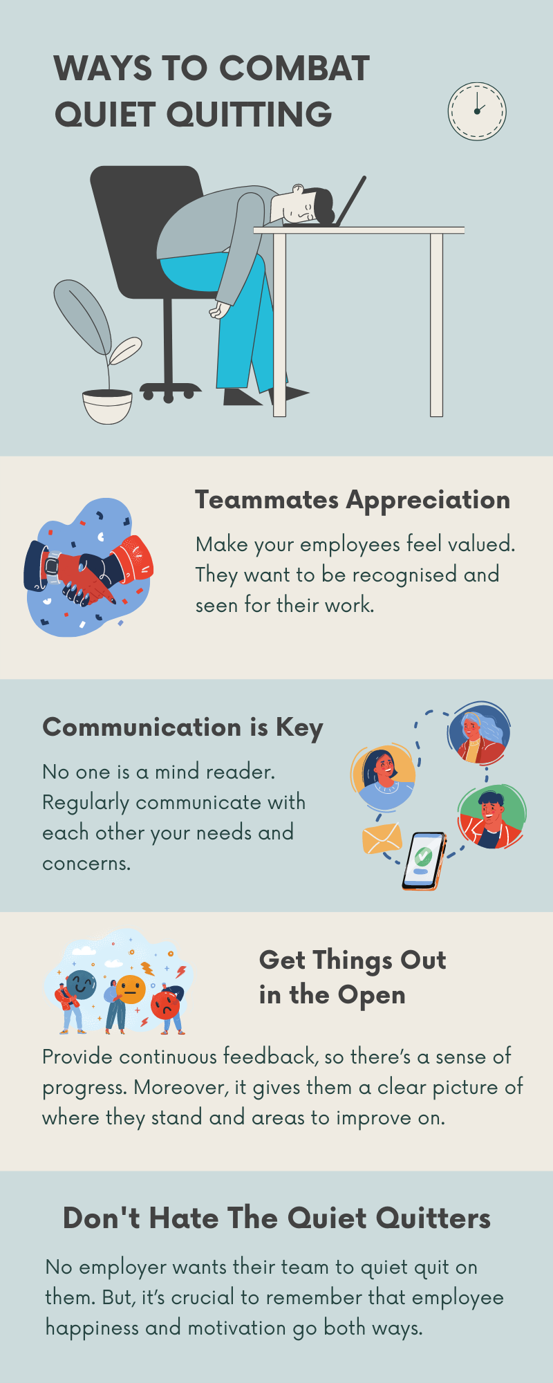 While quiet quitting helps maintain healthy boundaries at work and remove oneself from toxic productivity, this phenomenon costs companies money and affects the morale of existing employees. If the shift in employee behaviour becomes dire, HR must step in because of these production gaps.