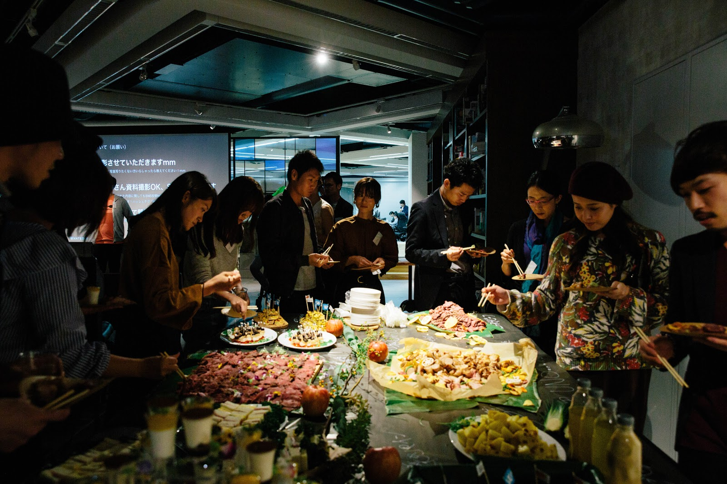 普段お使いいただいている企業様同士や企業様とWantedlyメンバーが少し豪華な食事を片手に、交流しました。