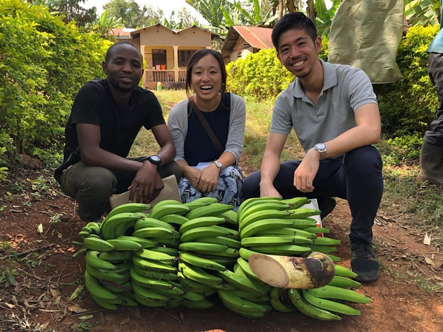 新規事業のマーケット調査でバナナ農家に行った時の写真。(写真右が中田)