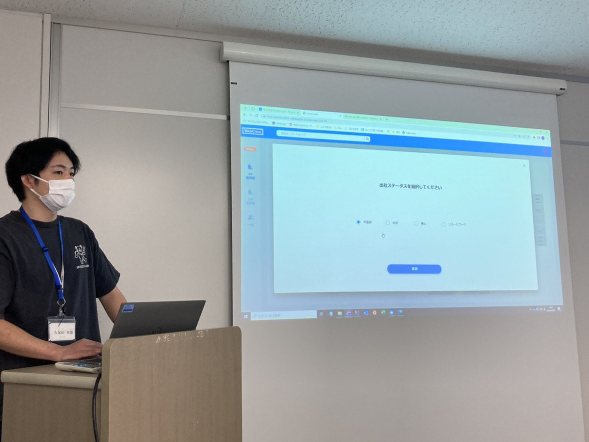 ※出社している人は会議室で、リモートの人はオンラインでプレゼンを聞いてくれていました!