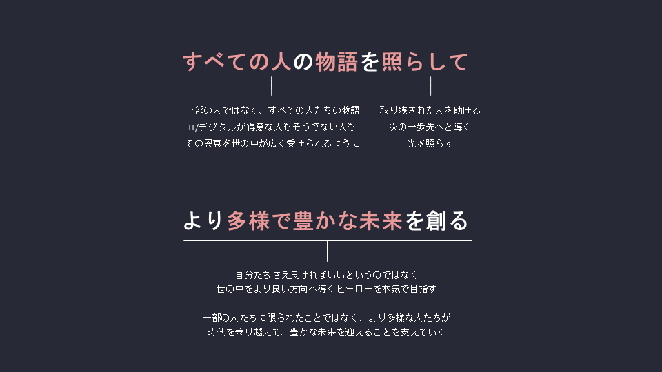 株式会社ウェブライフの事業と企業理念、企業文化をご紹介。ITの技術が発達し、インターネットを活用したビジネスはとどまることを知りません。 その一方で、変化についていけず、情報格差が広がり、取り残されている人がいるのも事実です。 ITは「ツール(道具)」ですが、そのツールをうまく使いこなせない人たちが多くいます。 またレガシーなツールを手放せず、莫大なコストがかかり苦しんでいる人たちがいます。