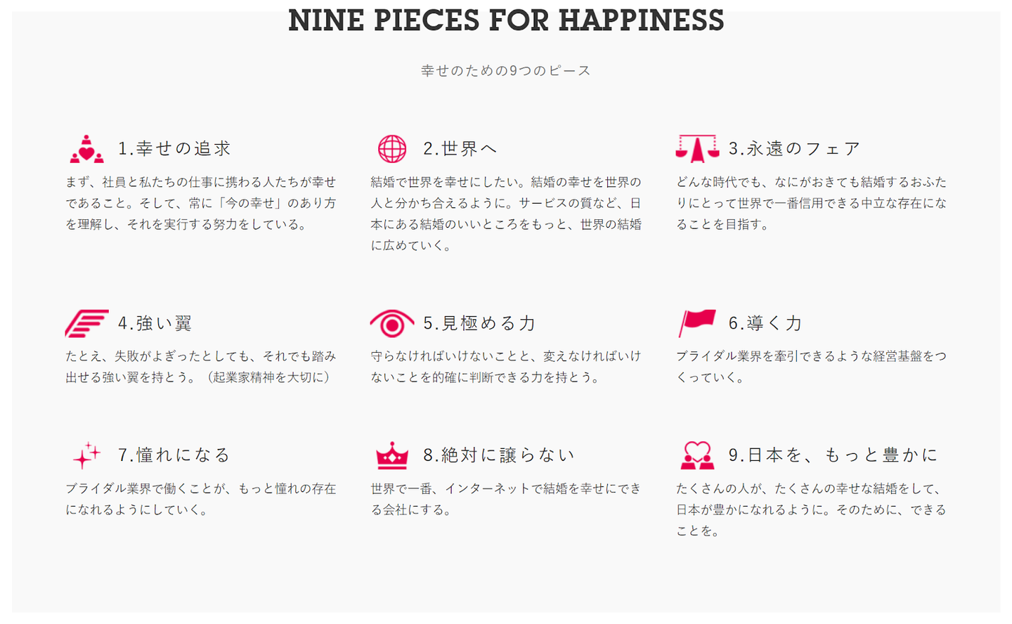 業界への貢献としても、ブライダル業界は今、コロナ禍で変化を余儀なくされています。クライアントへの貢献方法に悩んだ時期もありました。集客や接客のオンライン化など、大きく変化している今だからこそやれることを考えて情報提供したり戦略の提案をしたりと、インターネット×ブライダルで事業を展開している私たちが、行動規範TRUTHにある「憧れになる」を体現して、ブライダル業界・結婚式場の活路を見出していきたいと思っています。