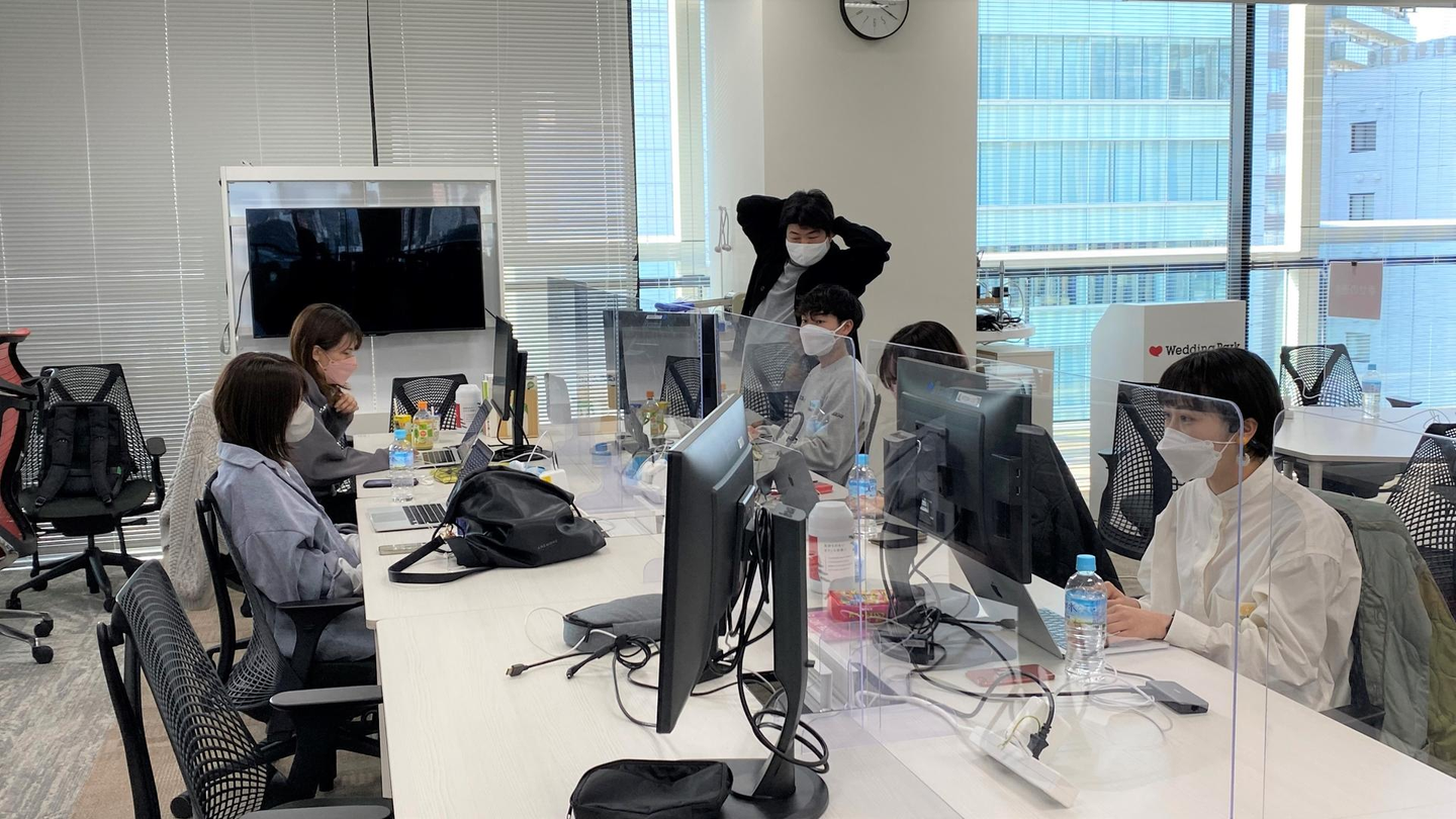 オフィスに出社しているメンバーは、集まって作業を進めていました。