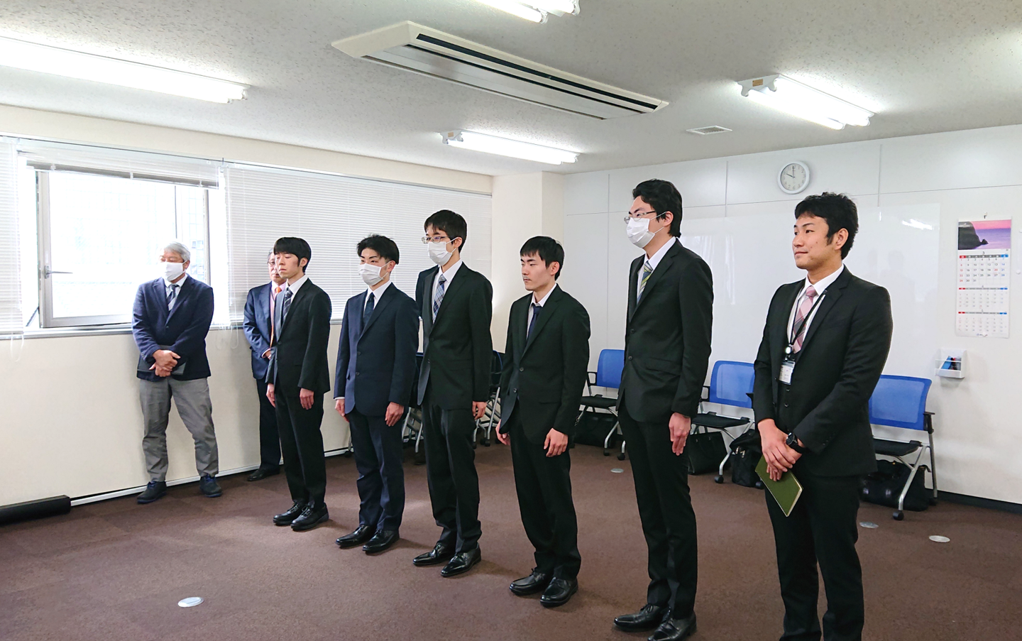 新入社員は真剣な面持ちで社長の話を聞いています。