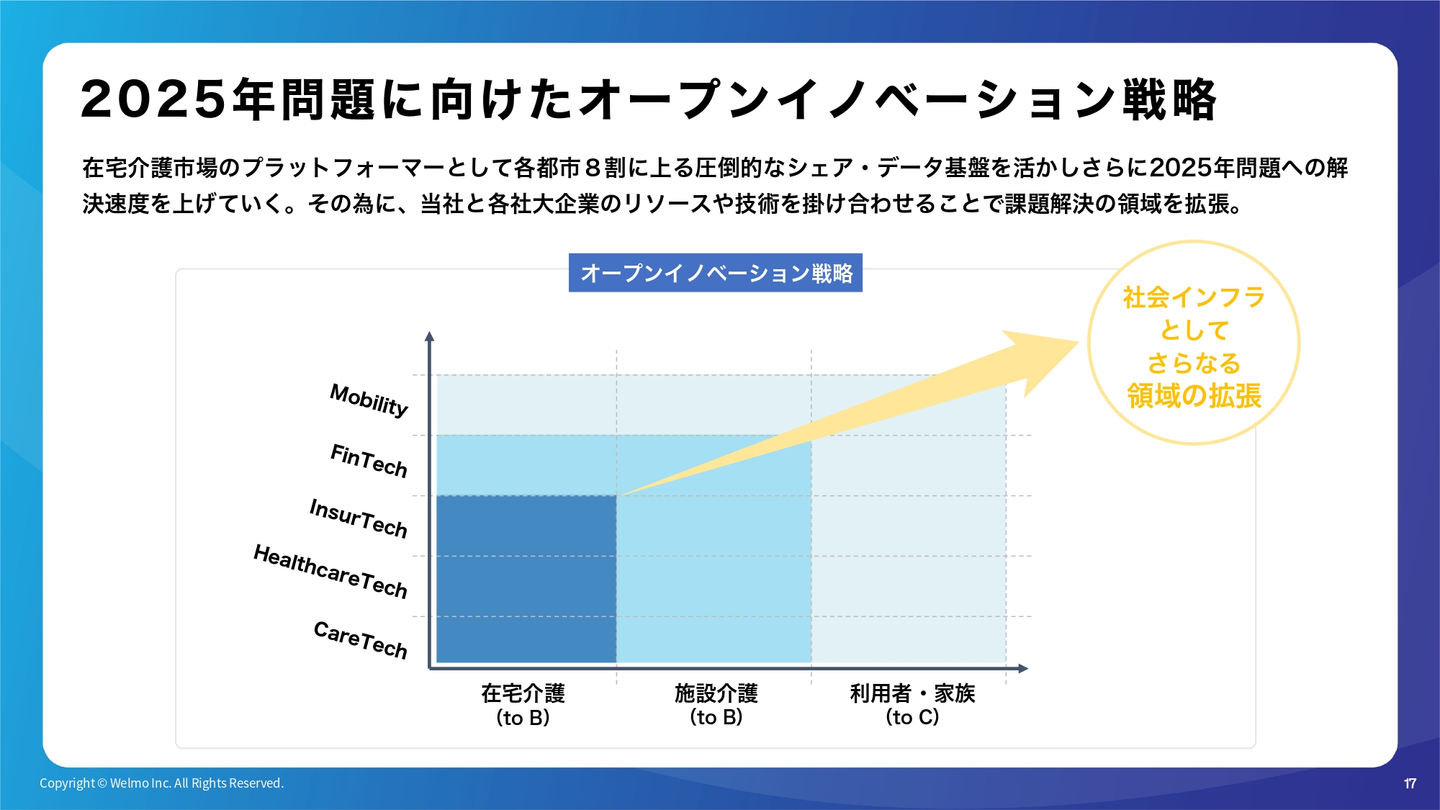 ウェルモがプラットフォーマーとして所有する在宅介護市場のデータ基盤と、各社大企業のリソースや技術を掛け合わせることで、課題解決の領域を今後さらに拡張していきます。