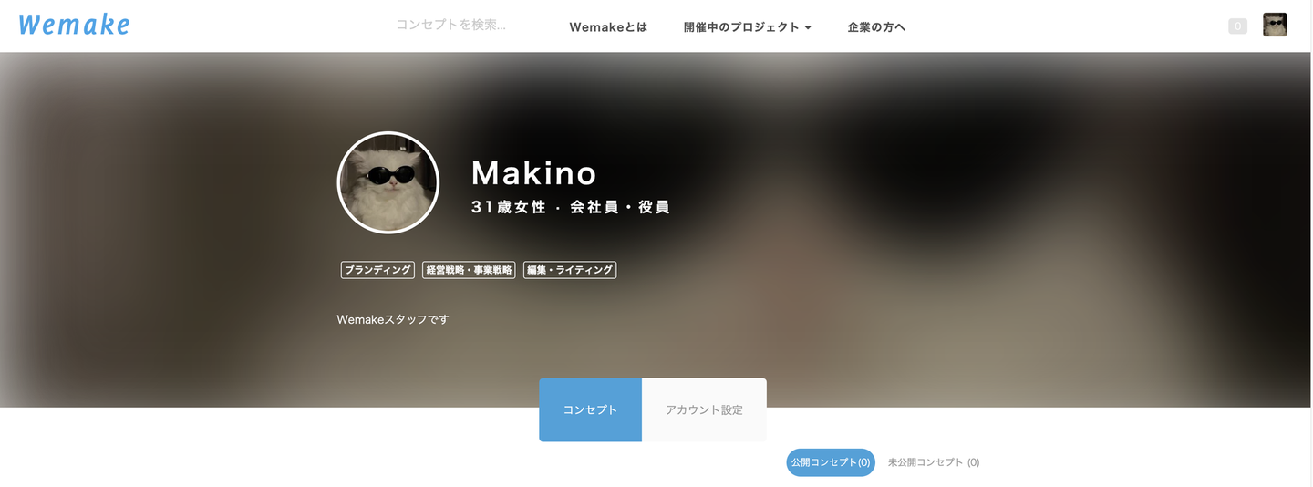ユーザーのプロフィールやこれまでに提案したアイディア(コンセプト)などを確認できます。