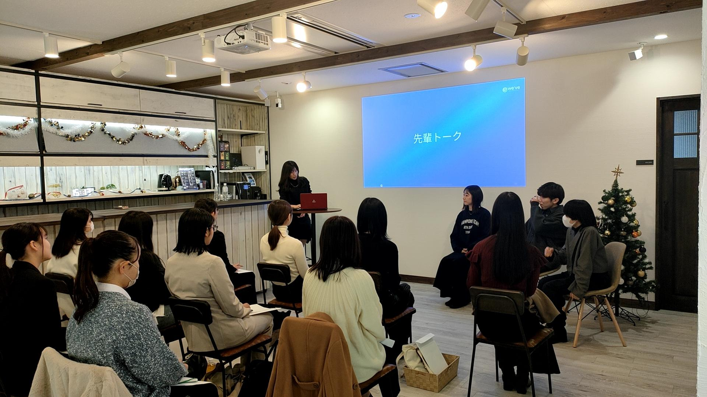 ウィーブの会社説明会は会社説明、オフィス紹介、先輩トーク、質疑応答、のギュッと凝縮パターンでお送りしています。