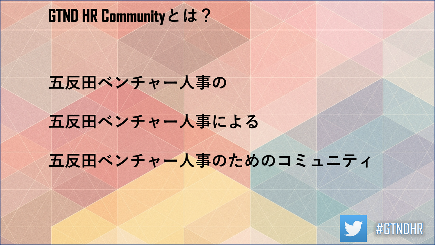 GTND HR Communityとは、五反田ベンチャー人事のためのコミュニティです。