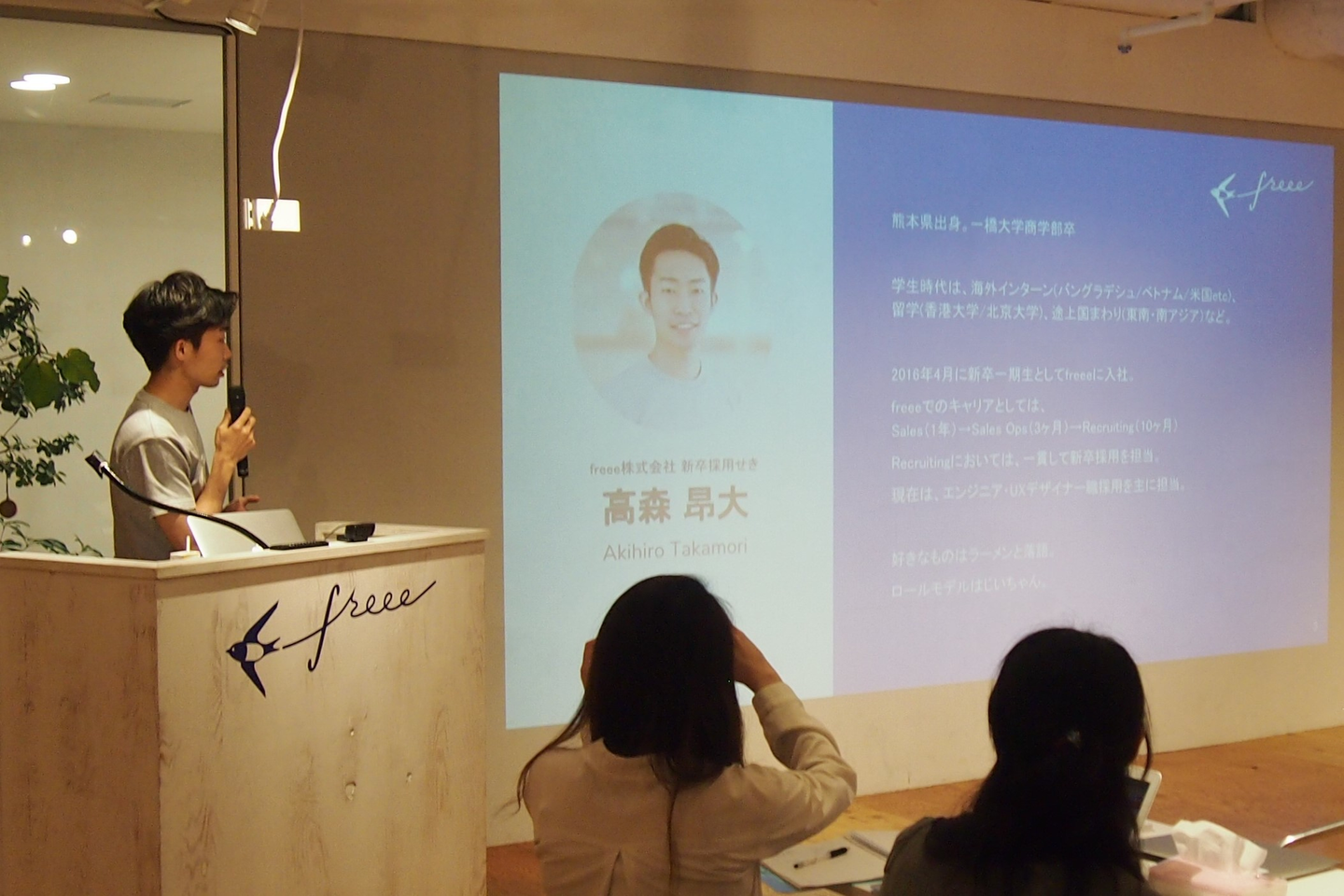 若いのに貫禄のある高森さん。その貫禄分けてほしい。。freeeさんはどんどん人数が増えていて、450名ぐらい社員さんがいらっしゃるようです。事例については、候補者との向き合うときのスタンスやマインド、学生との連絡頻度、そしてあえて採用しない覚悟についてもお話いただきました。