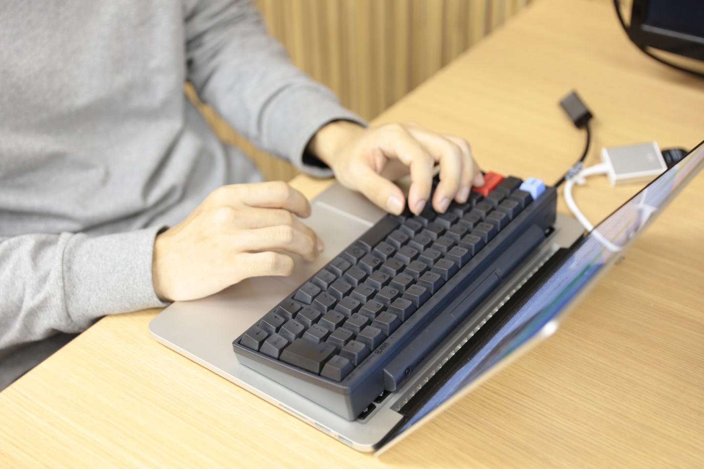 【愛用のキーボード。赤と青のところのパーツは結構値段するらしい(まじか)】