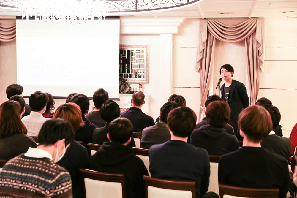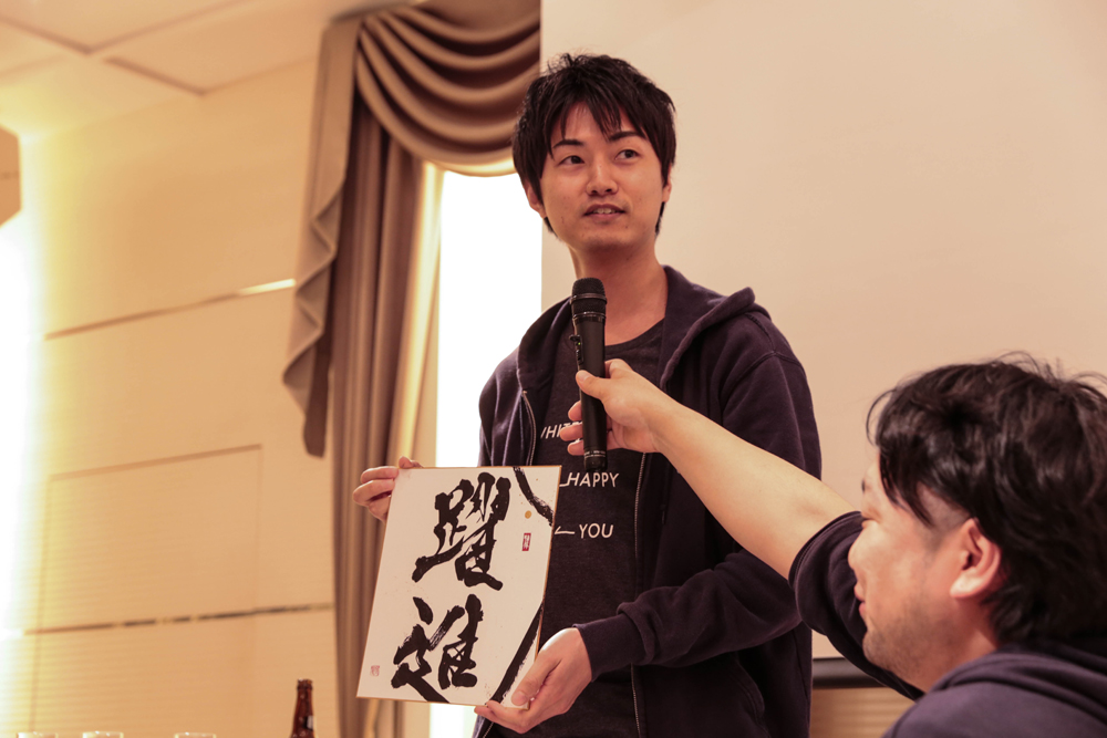 2018年の振り返りから始まり、2019年の方針発表、全社目標、スローガン発表、そしてValue Awardsの表彰式。第二部では書道パフォーマンスやシャッフルチームでの2019年の抱負発表など、盛り上がりを見せた新年会。土台を作った2018年、その土台をもとに前進、進化、革新(進)を実現し、個人も会社もさらなる成長に向けた2019年がスタートしました。