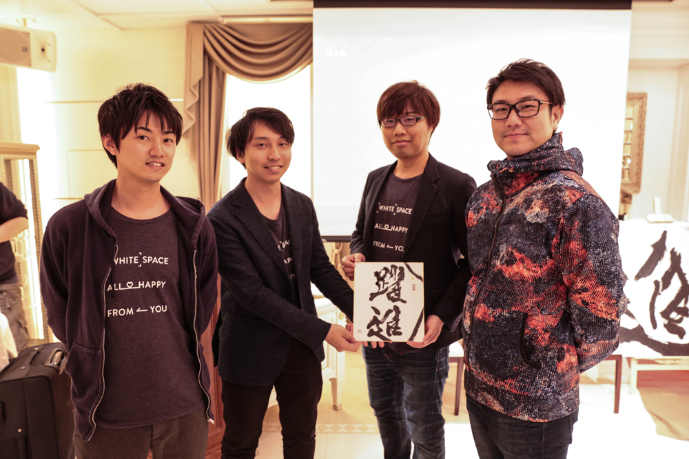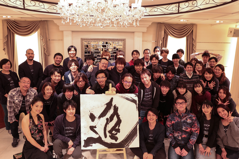 全社スローガンの「進」を入れたいと思い、一心同体の心を「進」に変え、書いていただいたようです。年々採用強化している、新卒メンバーが互いを励まし、切磋琢磨しながら、強い絆を持ち、ホワイトプラスの中心メンバーとなり、顔になることを願っています!