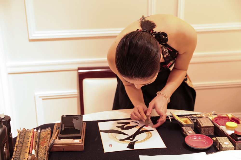 素晴らしい書道パフォーマンスが終わり、乾杯へ。