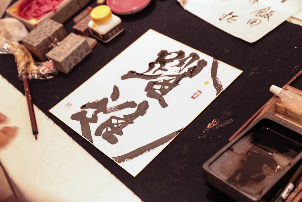乾杯に行く前に、ここでようやくTOP画にもあるように、書道家の小川啓華さんに登場していただきました!