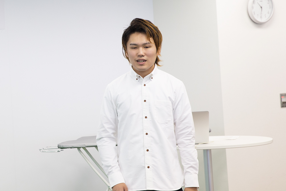 当社はオフィスカジュアルとしているため、スーツを着用する機会はほとんどありません。就活ではリクルートスーツを着ることが多かったであろう彼らも、これから先のビジネスシーンではビジネスカジュアルなシャツを着用することが多いはず。
