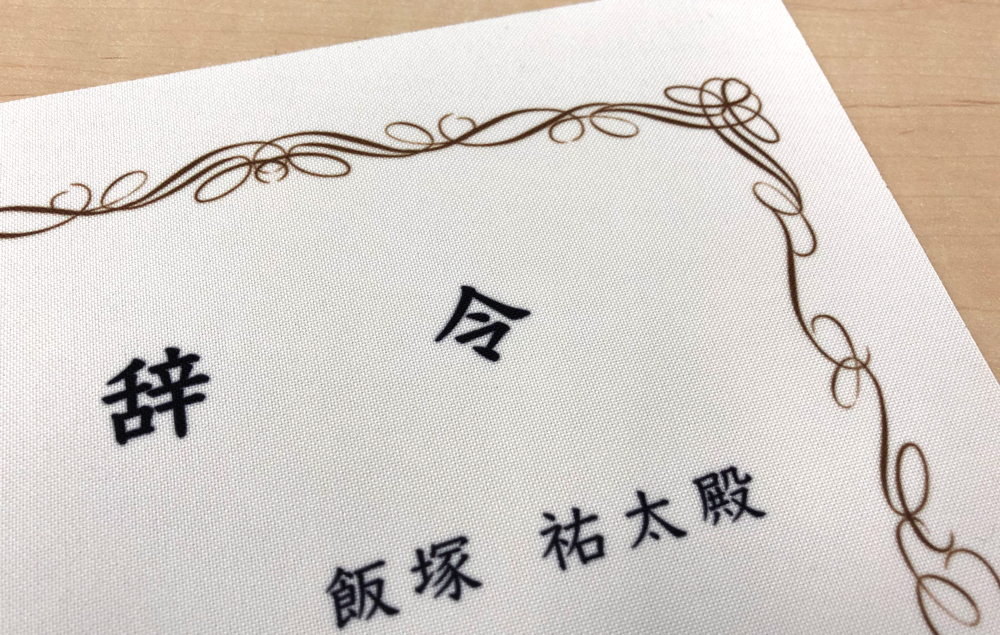 これは余談ですが、「布辞令を作ろう!」となったものの、布に辞令なんて印刷したこともないし、他社事例ももちろんなく…。事務局は必死でネットで探して問合せしました(笑)