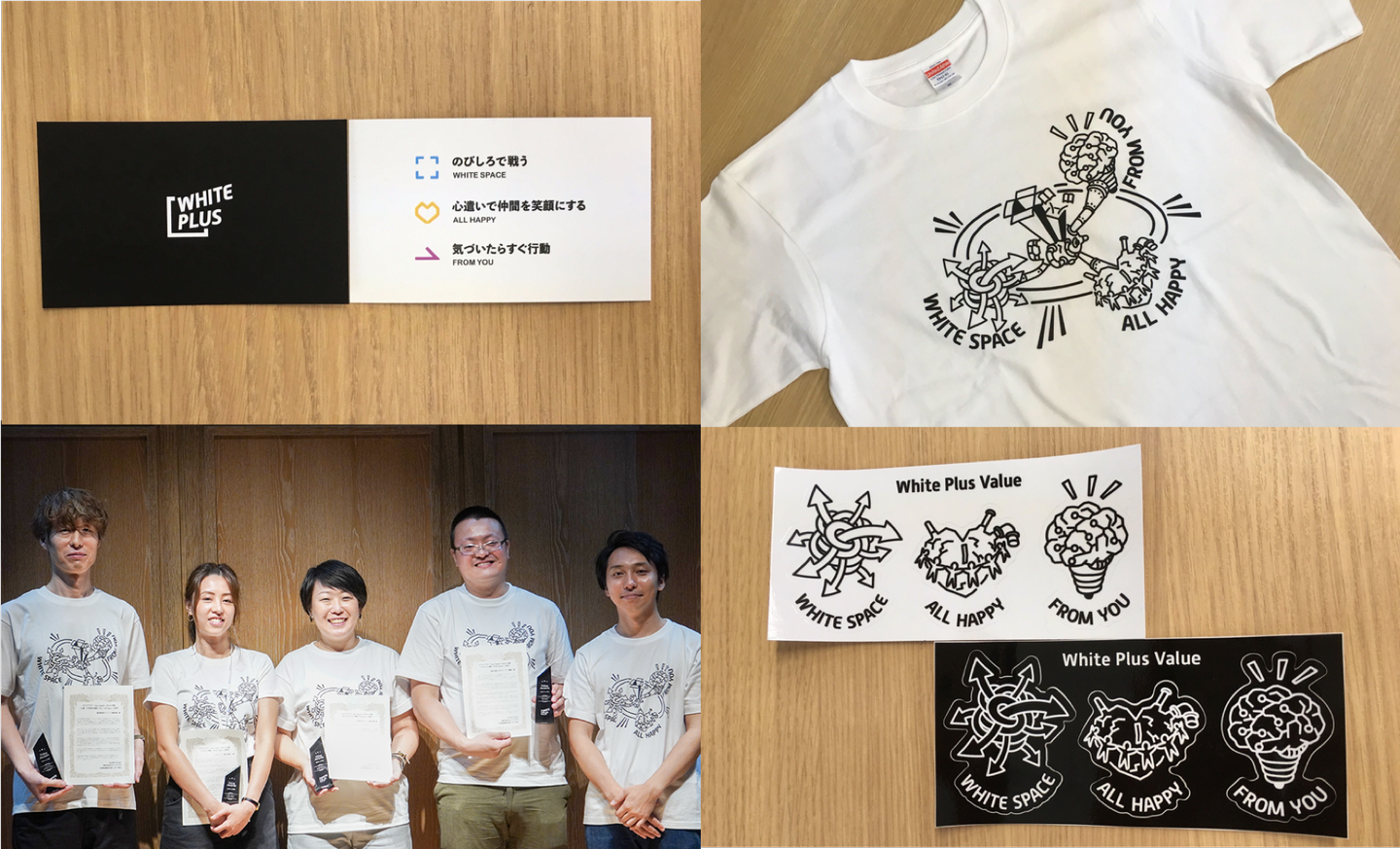 せっかく使ったバリューが社内に浸透しなければ意味がありません。ホワイトプラスのバリューを社内に浸透させるために、バリューグッズの作成・配布、バリューアワード(半期に1度バリュー体現行動者を表彰)の実施などをしながら、社員がバリューに愛着を持ってくれるように泥臭いですが、地道にコツコツとやれることをやり、日常的にバリューに触れる機会を作り出すようにしています。