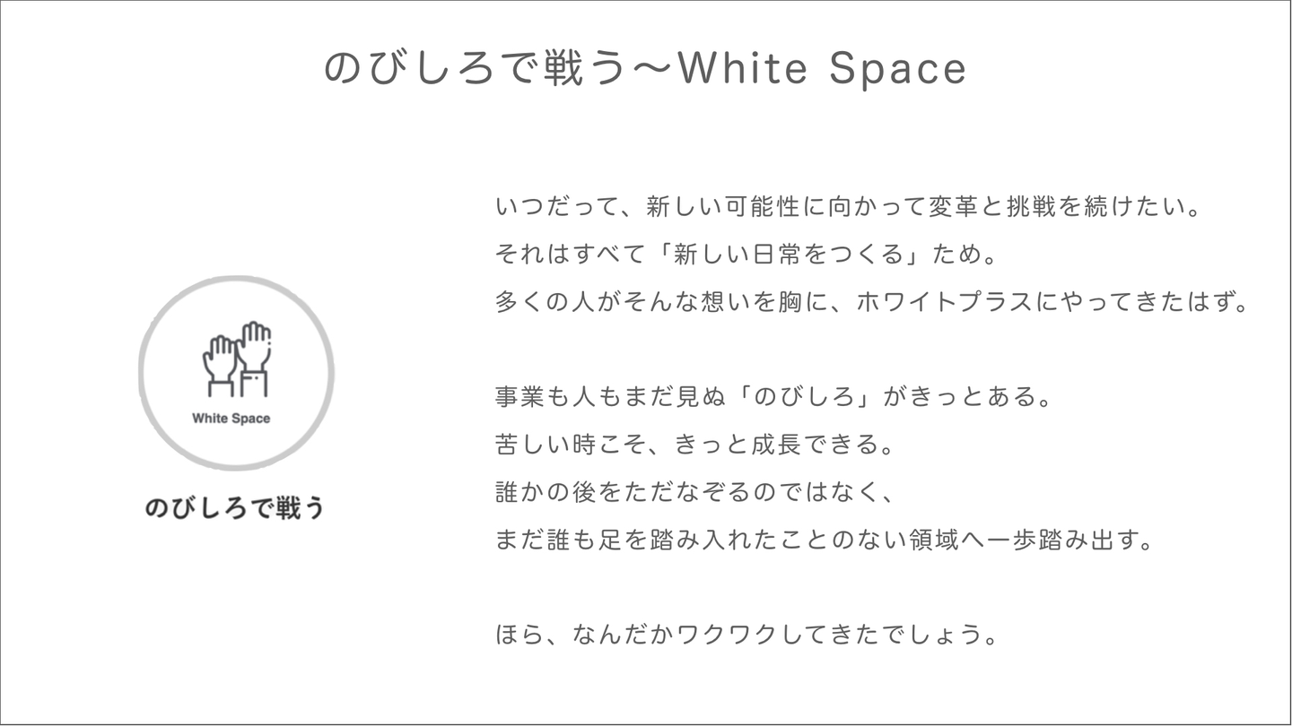 ホワイトプラスはビジョンである「新しい日常をつくる」を実現すべく、